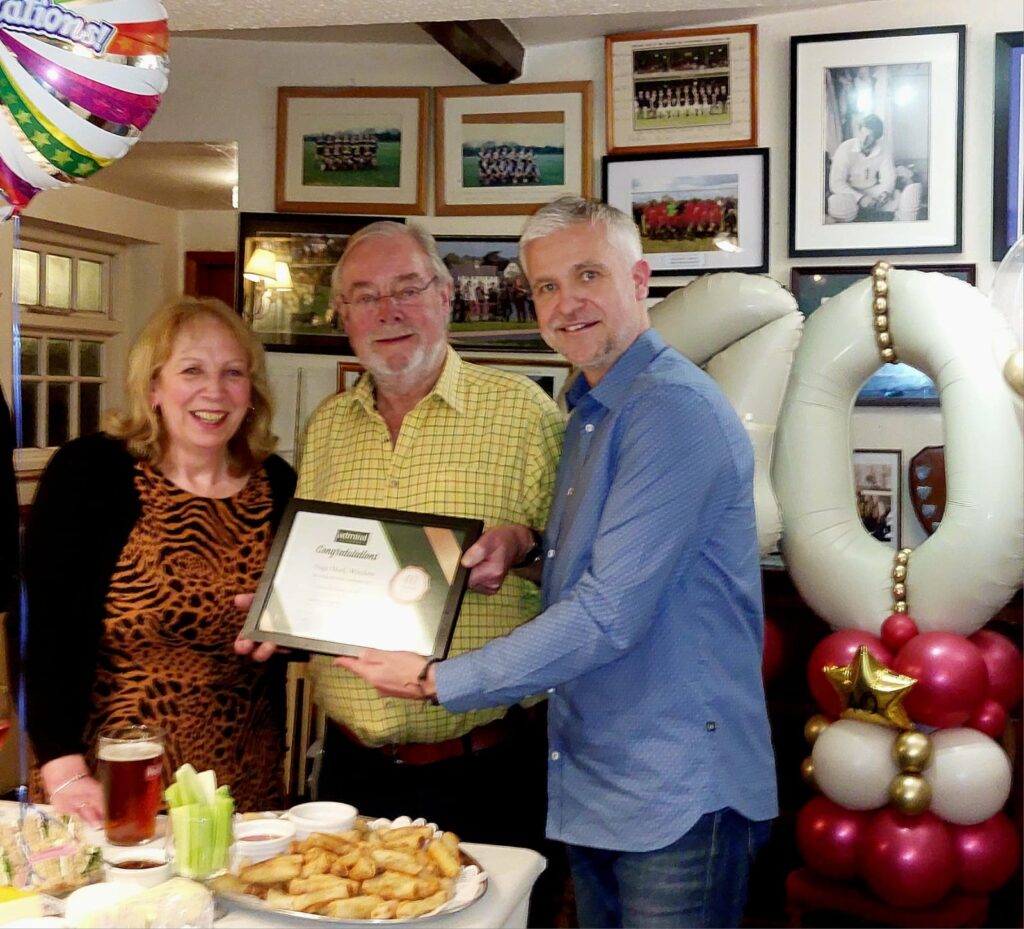 David and Kath took over the pub in 1983 and with the help of their children, Jason and Katie, they have successfully cemented it at the heart of the community, becoming the social hub of Winslow. This month, David and Kath were visited by Admiral Taverns’ Business Development Manager, Paul Barnfather, receiving a certificate of achievement to recognise the outstanding service to the pub, as well as flowers and champagne.
