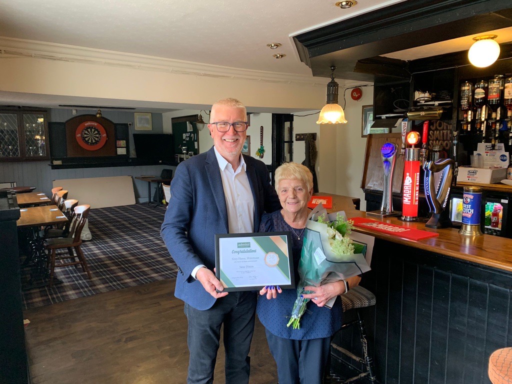 Admiral Taverns’ Chief Executive Officer, Chris Jowsey, recently presented her with a certificate that recognises her incredible service to both the pub and the local community.