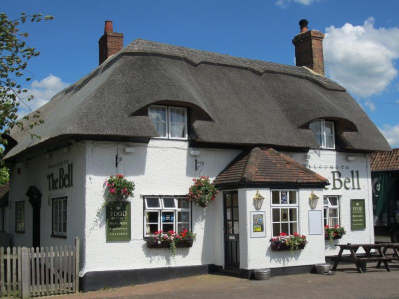 The Bell is prominently situated in the middle of Cotton End, a small village on the outskirts of Bedford. The pub is a small, attractive, thatched pub with a very large beer garden and benefits being the only pub in the village with other local amenities such as a School, Church, Village hall with playing fields and park. The pub lies on the A600 High Road between Shorstown and the hamlet of Herrings Green with easy transport links to Bedford.