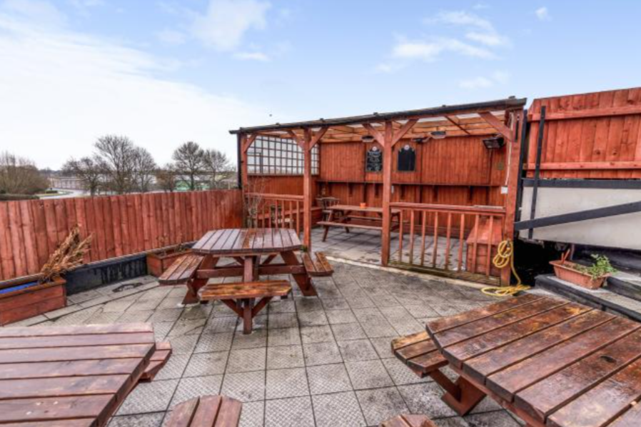The domestic accommodation consists of three bedrooms, domestic kitchen and lounge. Externally the pub benefits from a large paved patio area with bench seating, along with a lawned beer garden. The Crumpled Horn also has a car park which accommodates for 20+ cars.