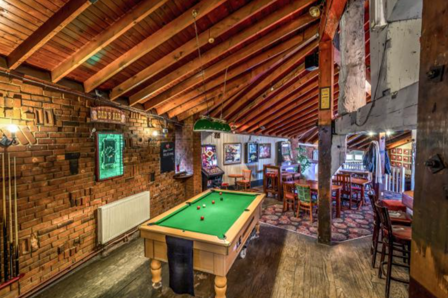 The pub is served from a hexagon shaped bar which services the whole trading area. Their is a mixture of fixed and loose seating around the building with separate snug enclosures. The elegant structure of the pub is with traditional beams to a high rise roof point and rustic brick exposed walls creating a relaxing ambience to enjoy. The pub houses a darts and pool area for sporting teams.