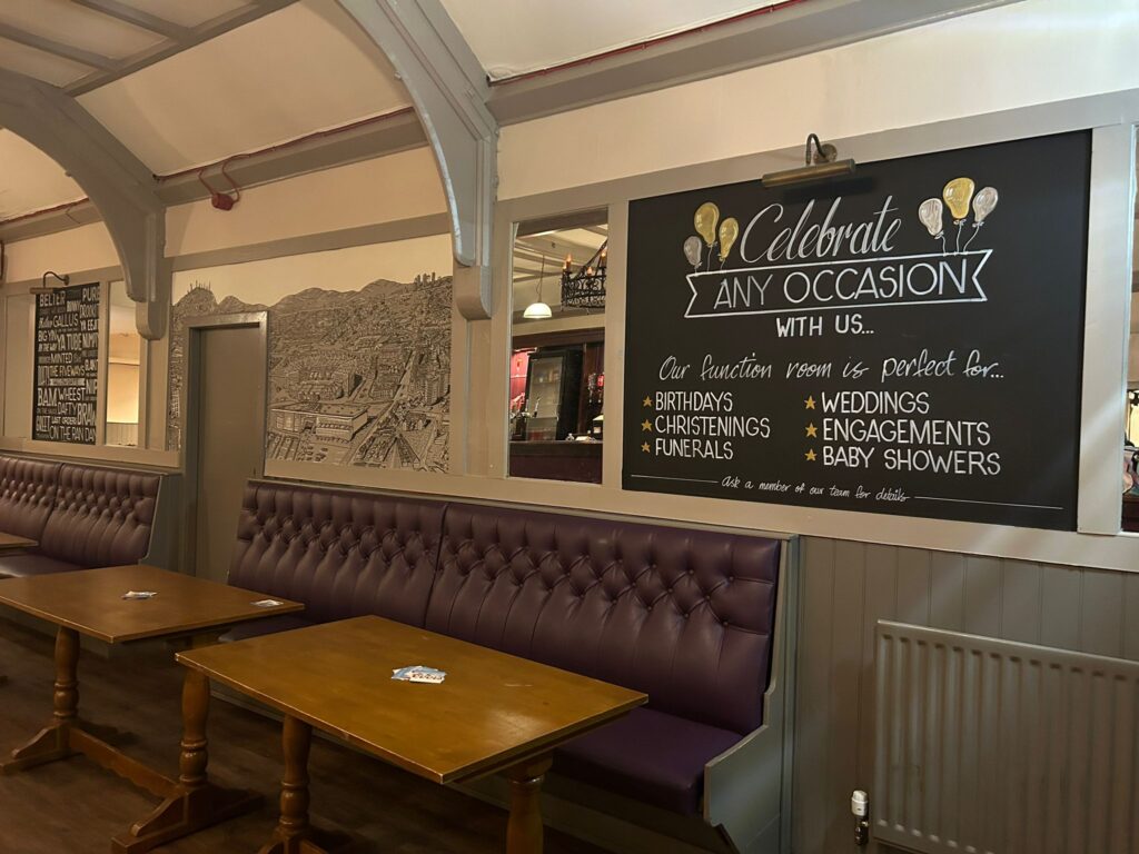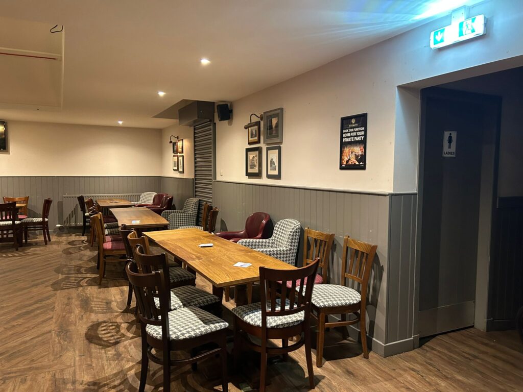 Five Ways is a two bar operation – a main bar and a function room. The main bar area has the bar to the left of the entrance along the side wall. The fixed and loose seating surround the other walls leaving an open floor space suitable for main high street footfall and football fans. The function room, with its separate entrance, is located at the back of the building and can seat approximately 100 people, It has its own dance floor with a bar adorning the wall opposite the entrance, it has a mixture of fixed and loose seating, tastefully decorated and perfect for a private function and live entertainment.