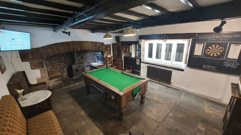 Both of the main front doors lead into the main bar area, featuring period fixtures and fittings, stone floors, exposed stone walls and wooden beams reflecting the heritage of the building. The entrance hall to the left of the pub leads to the toilets, with an access door to the main bar. The main bar seating area caters for approximately 25-30 covers and is served by one central bar stocking a range of popular products. Access to the well-appointed catering kitchen is located to the rear of the bar servery. To the right and rear of the main bar is a separate games room with pool table, dartboard and TV, and a small snug seating area is situated at the front. Further to the right of the pub is the large, split-level function room area. On the ground floor there is a separate bar, kitchen area, servery, dance floor with DJ booth and loose seating for 25-30 covers, with stairs leading up to a mezzanine level featuring period seating for an additional 25 covers and exposed beams. Externally to the front, the Fleece boasts a beautiful beer garden with bench seating and childrens play area, along with parking for approximately 15 vehicles. Additional parking for approximately 10 vehicles can be found at the rear of the pub, along with separate entrances to the bar and kitchen.