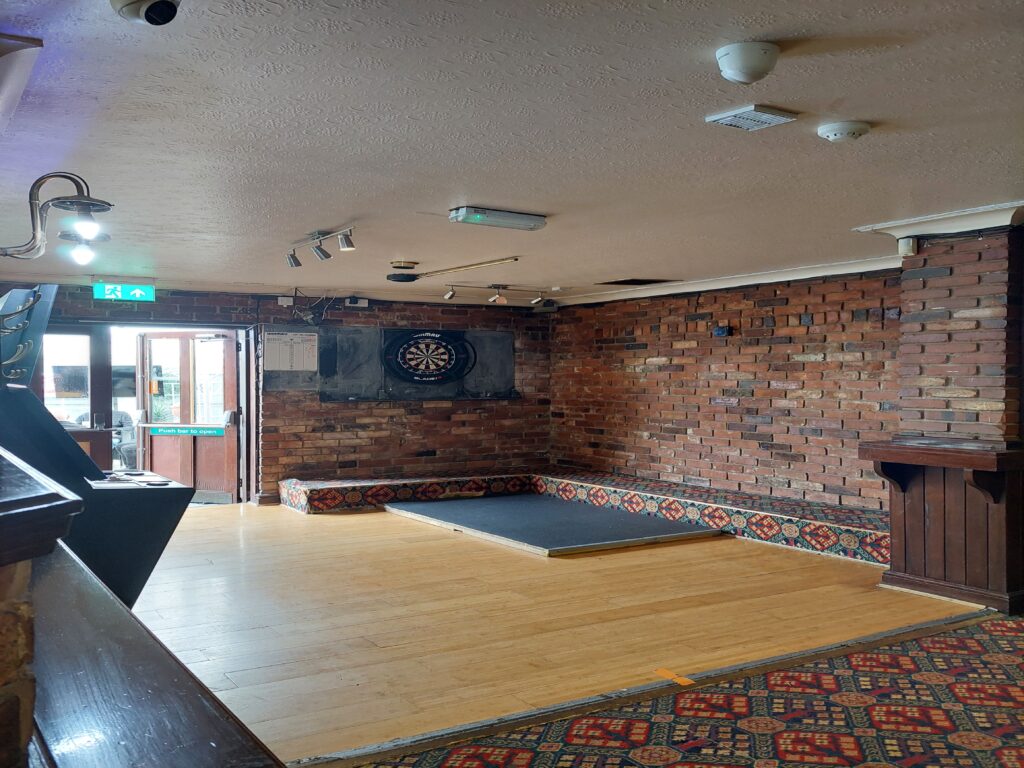 As you walk into the Harry Hotspur you enter through a porch which leads to another set of doors and into the pub itself. To the right is the area set aside currently housing a pool table. The pub has one long bar with a commercial kitchen hidden to the side. There is the option to serve roughly 40 covers. Pool team and darts team help to bring further trade to midweek. There is plenty of fixed and loose seating throughout with a raised area which is mainly used as the restaurant area. There is a dance floor/darts oche towards the rear of the pub with the toilets to the left of the bar. Outside there is also a garden area and seating.
