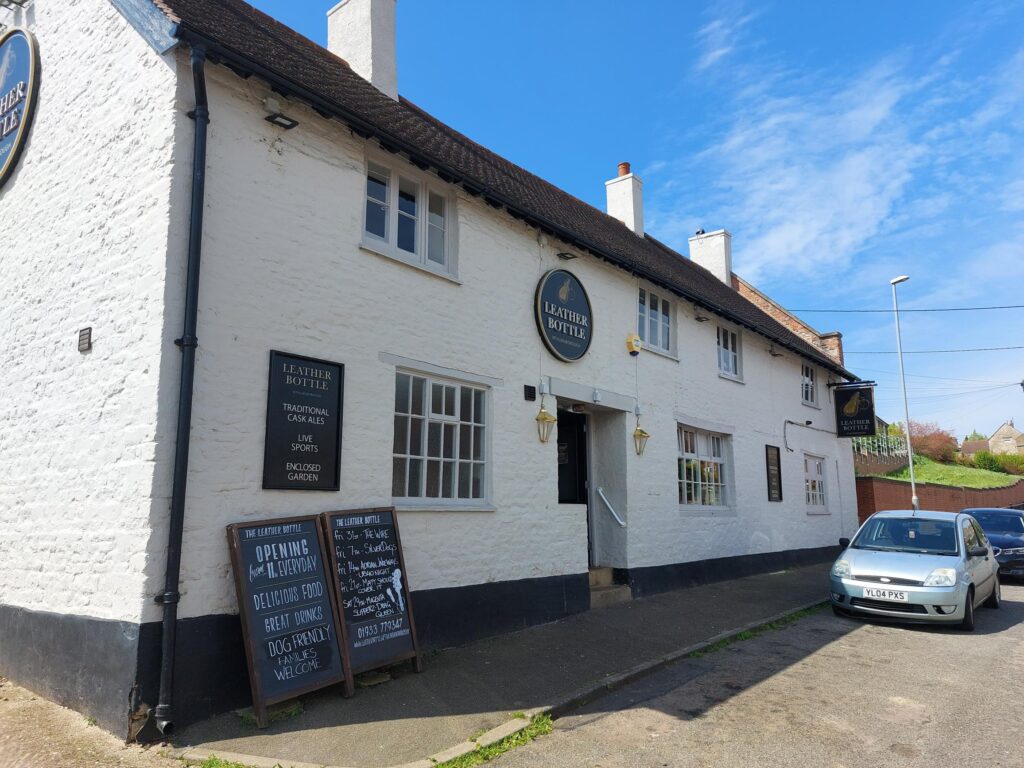 Located in Irtlingborough, the Leather Bottle sits in a residential area with plenty of houses surrounding the pub just outside the town centre. Irtlingborough sits on the River Nene just outside of Wellingborough, a market town in North Northamptonshire. With a population of 8900 Irthlingborough was initially the smallest town in England to have a football league team before the promotion of Forest Green Rovers in 2017. Surrounded by natural beauty with the Irthlingborough lakes & meadows owned by the Wildlife Trust and the numerous factories and logistics companies with a long history connected to Whitworths and Dr. Martens, the town is used by commuters for employment via the direct routes on the A45 or the A6.