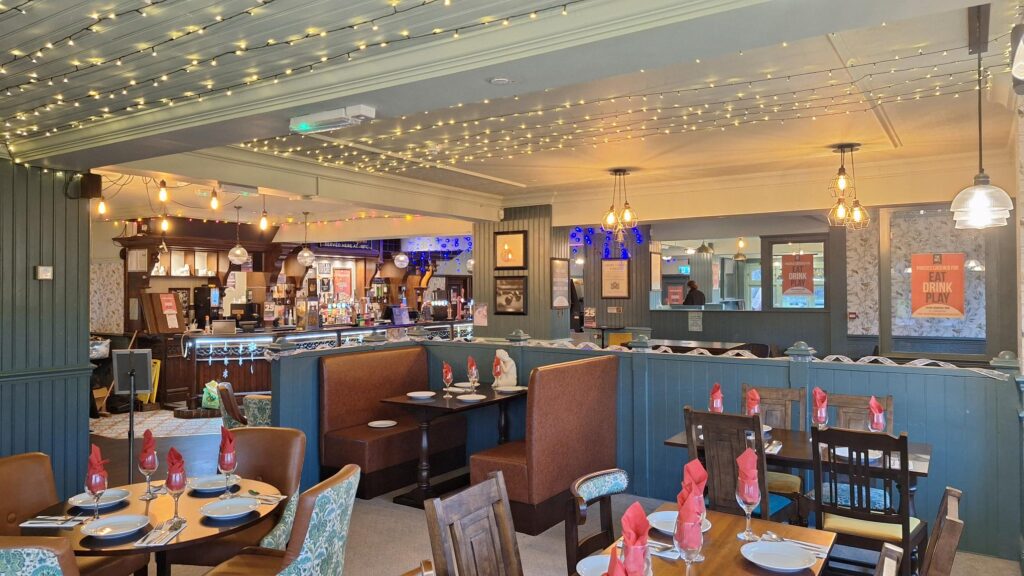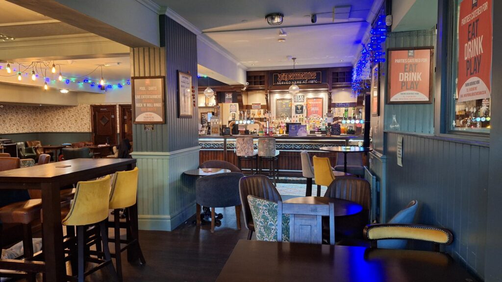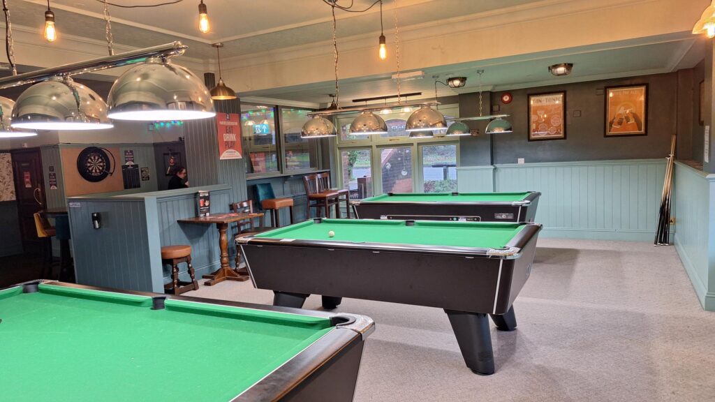 The pub is purpose-built; modern single storey building, built to serve the local community. Internally, it is beautifully decorated, warm, and welcoming with a spacious open plan bar area. The bar is the central point of the pub, serving the various zones – making this the perfect local for all occasions, be it drink or a food driven visit. The thoughtful layout means the captive audience is huge, with plenty of space to catch up with friends – whether having a bite to eat or a drink, play darts or pool, watching the match or enjoying the weekend entertainment.