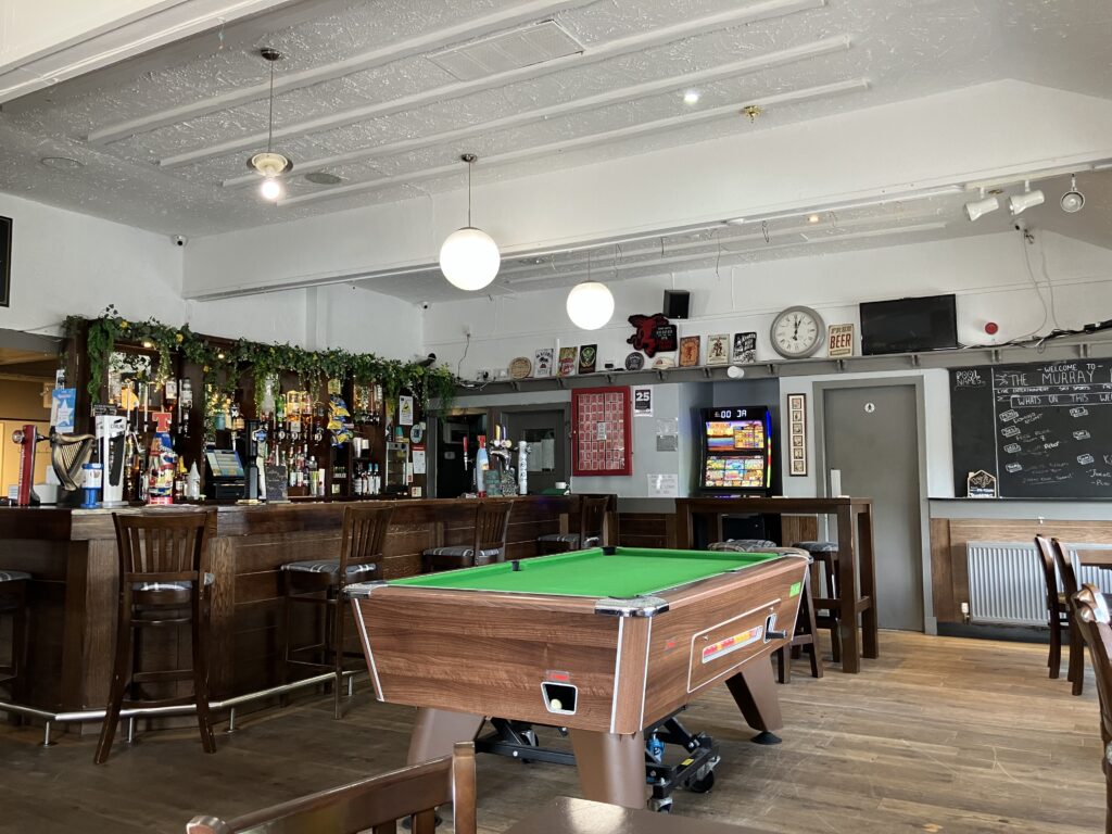 Entering through the front door, you are welcomed into the main bar area of The Murray. This is a single-room operation that boasts tasteful, modern décor both inside and out. The bar itself, positioned directly ahead, serves as the central focal point of the space. To the left, there is a mix of low-level bench seating and loose furniture, offering a relaxed and comfortable atmosphere. To the right, a dedicated games area features a pool table and darts board—ideal for team sports and social gatherings. Multiple TVs are mounted throughout the venue, broadcasting a full range of live sports from all major televised channels. Additionally, enclosed, paved patio garden areas on both sides of the building offer bench seating, providing the perfect outdoor space to enjoy during the summer months.