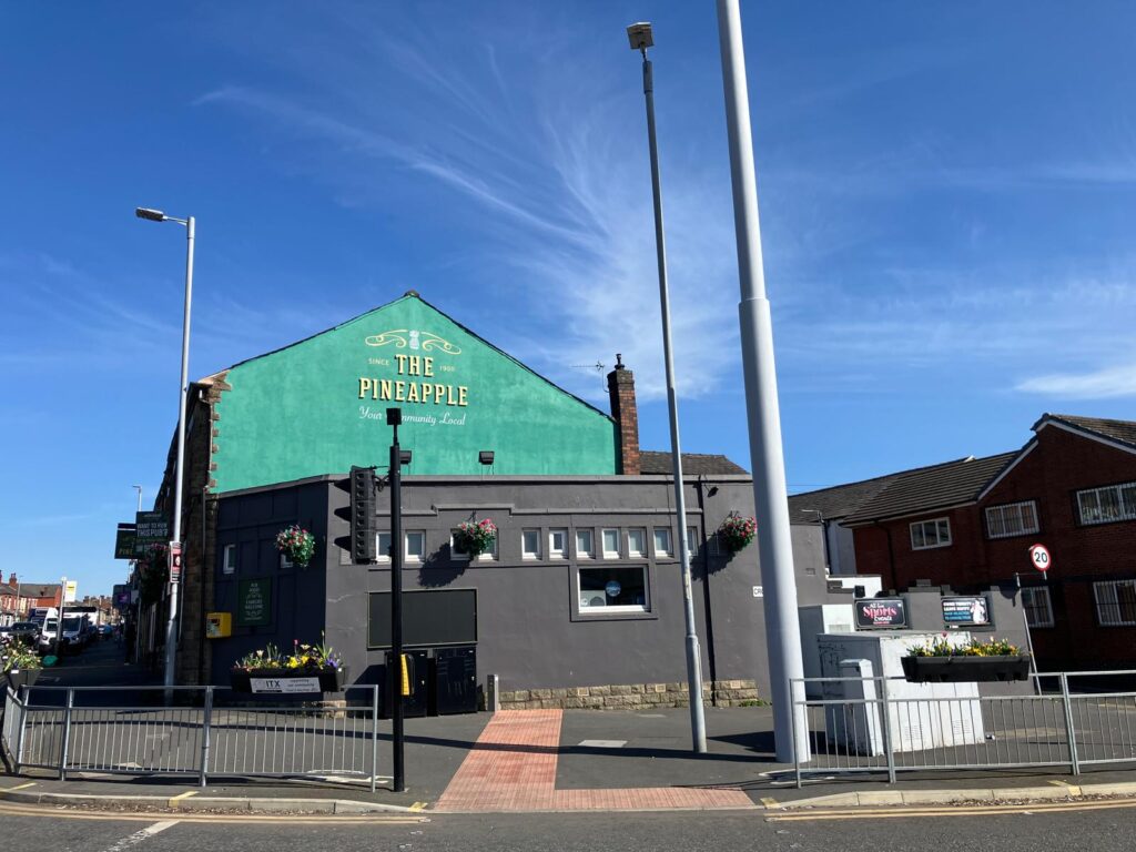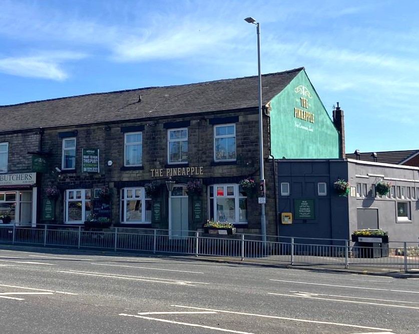 The Pineapple Inn is prominently situated on a busy cross road in Astley Bridge. The pub is the end building on a parade of shops in a highly populated area, surrounded by housing and opposite a large 24 hour supermarket. Astley Bridge itself is a suburb of Bolton, it is approximately two miles from the town centre.