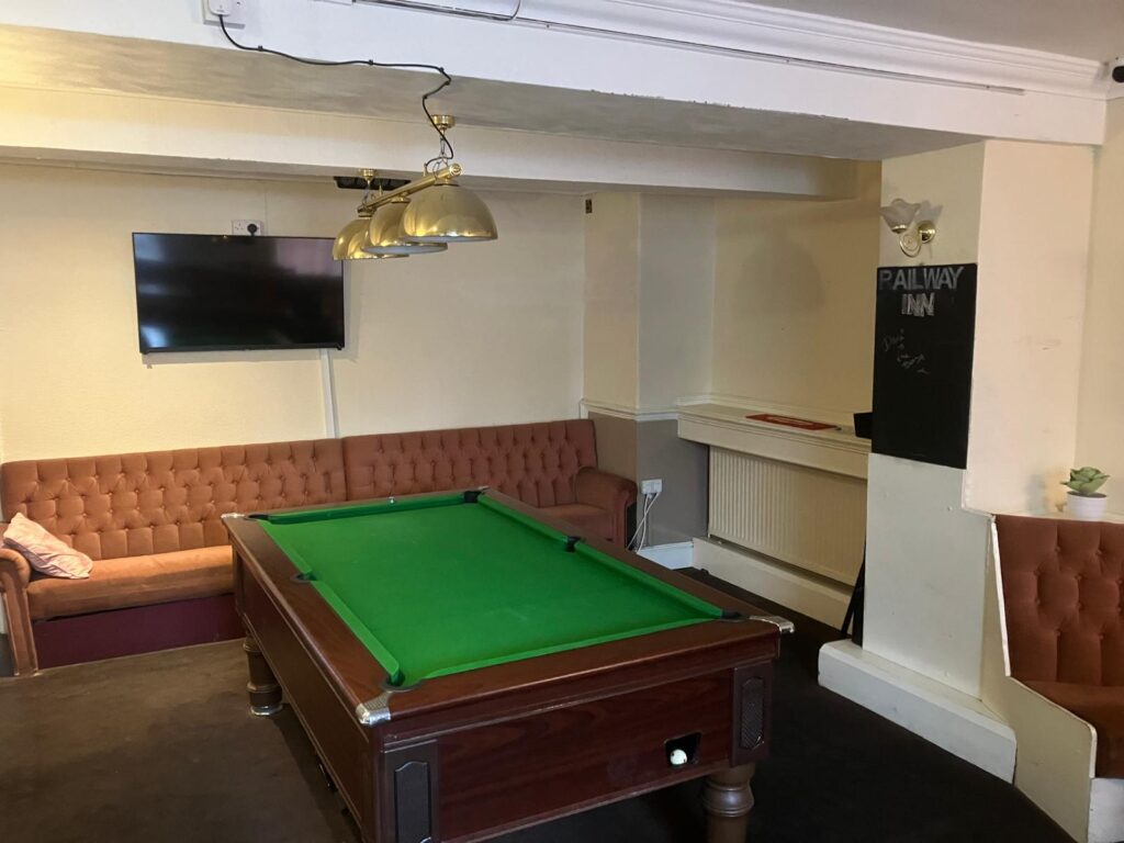 The Railway Inn is a popular locals pub with a great reputation for sports viewing and pub sports teams. They have an established regular entertainment programme with quiz nights and live music being popular and well supported. There is no catering kitchen at the site, although there would be scope for a small hand-held food offer to be developed to offer an additional revenue stream.