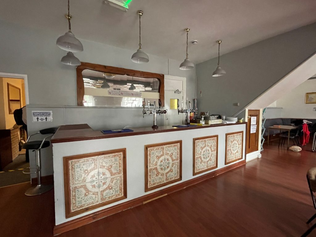 As you walk into the Rolling Mil, you have the choice to enter left or right. It is a two room operation served by a central bar that runs between the two rooms. As you turn right you have the general room with a big screen, juke box, a mixture of fixed and loose seating and which is the general day to day drinking bar. As you enter and turn left, you enter the tap room. Again a mixture of fixed and loose seating that is also home to the dart board and pool table. At the back of the tap room is a set of stairs that leads to two rooms upstairs. One has previously been used as a small restaurant and could seat approximately twenty four people. This leads through to a second function room. Currently this function space has three darts boards and is used for darts leagues. It has a large open floor and it’s own bar and could comfortably host sixty to eighty people.