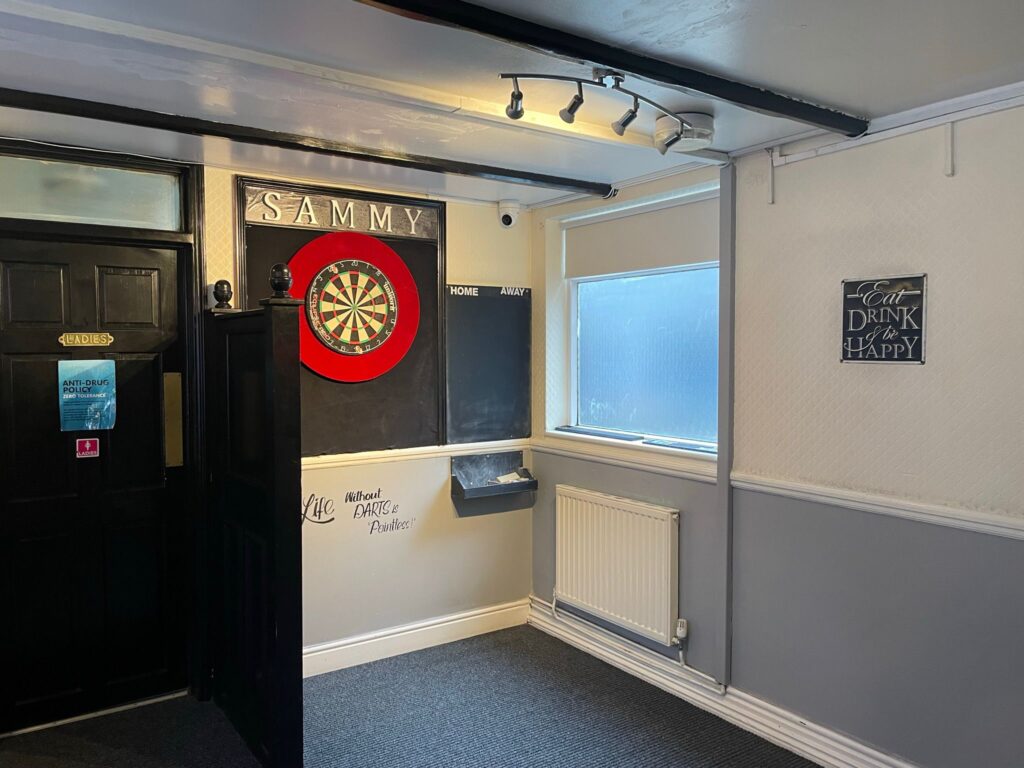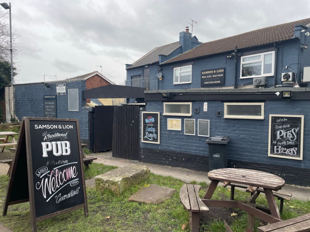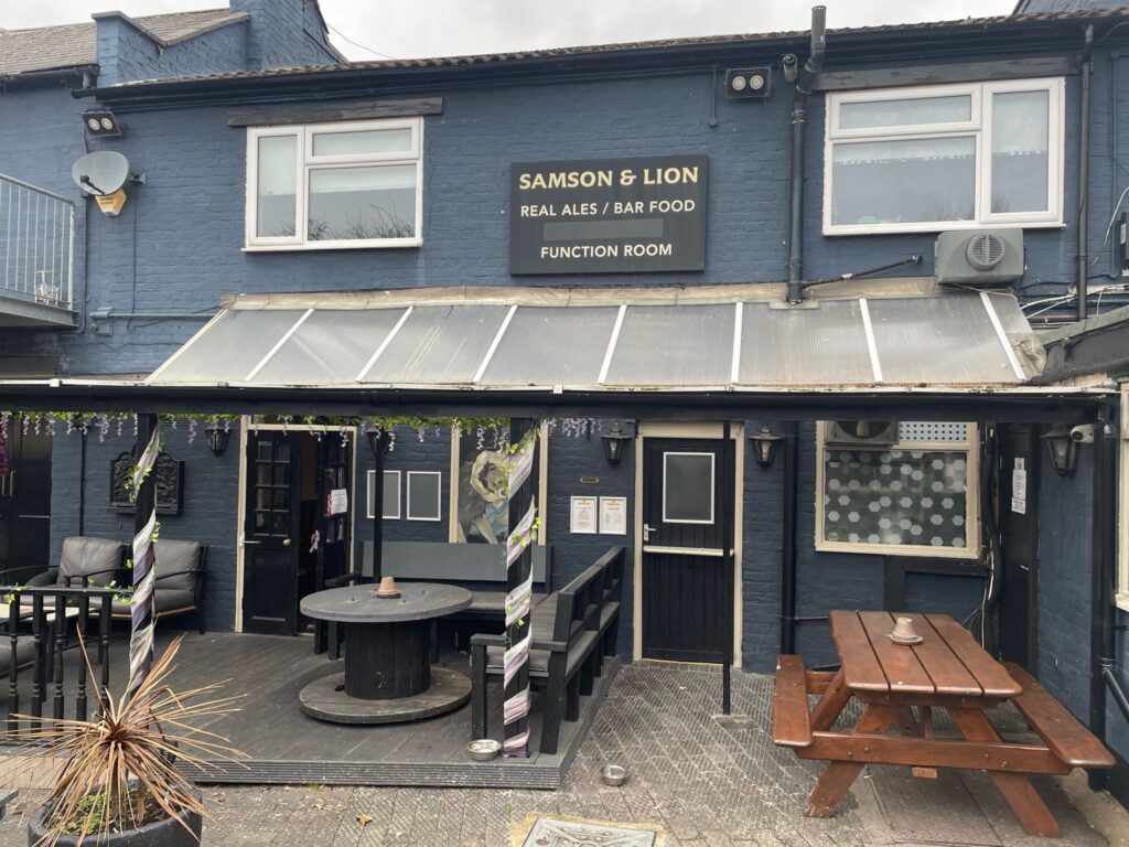 The Samson & Lion is a community local, currently drinks focused where local ales, premium and core beers are available as well as a great range of spirits and minerals. There is a small catering kitchen capable of doing small food offer including Sunday lunches and has the capability to provide live entertainment and sky sports.