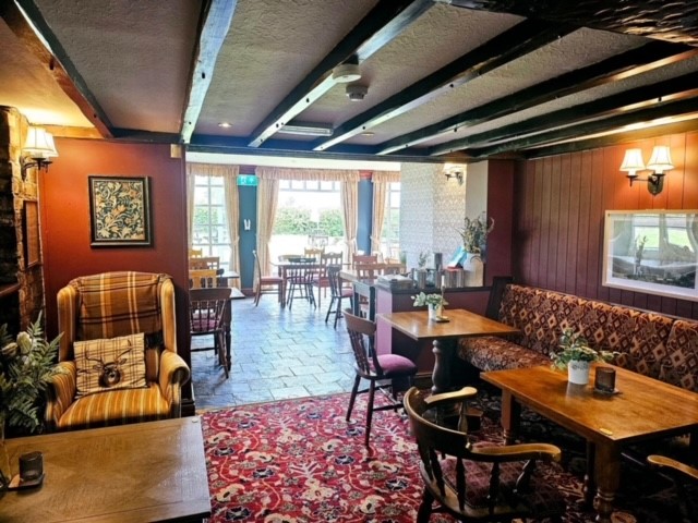 The main entrance of the pub is located from the car park which has space for several vehicles, as you enter the pub you are directed into the lobby where you will find the toilets. As you enter the main trading area, which is a one room operation and opens out to an extensive space. To the left of the entrance is the bar with two snugs and a dining area to the right with plenty of tables and chairs. There is a well-equipped catering kitchen to support the home cooked food offer that is currently in place. There are patio doors leading out to the large beer garden, which is mainly laid to lawn, making the perfect space for families and outdoor events. The décor is quite traditional with flag floors, carpeted areas and an open fire. There is a real cosy vibe when you are in the pub.
