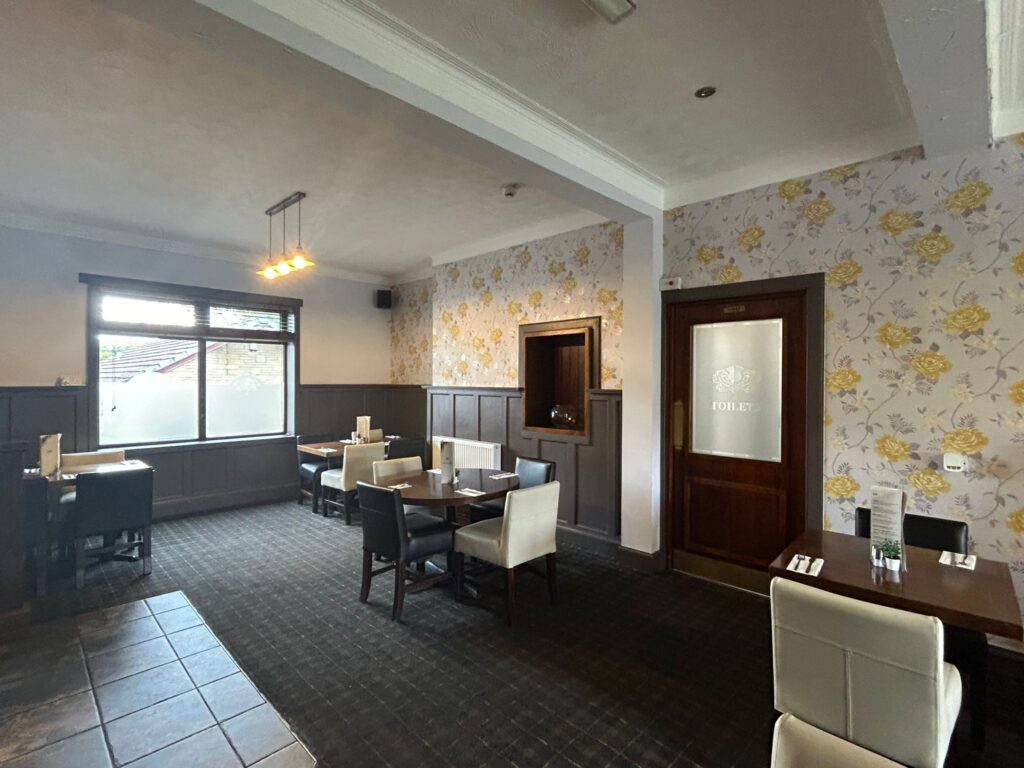 From the main entrance you will be greeted by reception. To the left of reception there is a small, traditional bar which boasts an open fire. With a mixture of low level fixed and loose seating, this area is complimented by a pool table and TV’s showing live sporting events. To the right of the reception is a beautiful restaurant. In contrast to the bar, this has a contemporary feel to provide the perfect ambiance and has seating for up to approximately 40 covers. The site is surrounded by a beautiful grassed area. There is a paved area to the side of the main bar complete with benched seating for those perfect summer months. There is a small car park to the right of the pub which can park approximately 6 cars.