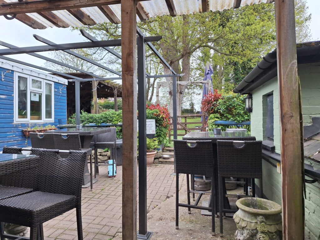 The Three Horseshoes has a single, open-plan bar with a pool table at one end and a dedicated darts area, creating a lively and sociable space. To the right of the bar is the games area, while to the left there’s a mix of booth seating and loose furniture, offering a comfortable setting for all customers. There are two entrances to the pub: one from the small car park at the gable end, which leads directly into the main bar area, and another at the front of the building, accessible from the main road. Outside, the pub boasts a large beer garden and patio space, providing plenty of room for outdoor events and gatherings. Behind the bar, there’s access to the cellar and a small prep area that could support a simple back-bar food offer.