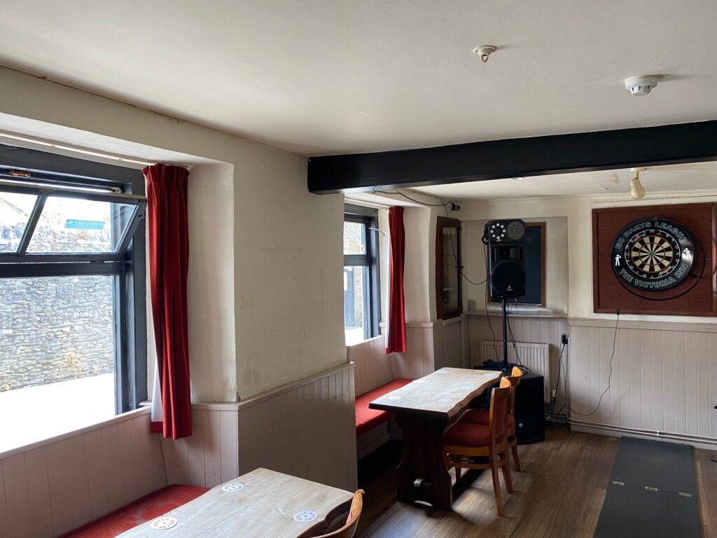 As you enter through the main roadside entrance, you’ll immediately find yourself in the bar, which is a single-room setup with a central bar servery. The interior is furnished with a combination of fixed and loose seating, offering flexibility for different occasions. On the left side of the room, there’s a darts oche, perfect for engaging locals in friendly competition, while TVs are strategically placed on the right to cater to sports enthusiasts. Behind the bar, you’ll find the domestic kitchen, conveniently located to serve the needs of the establishment and provide a back bar food offering. The ladies is located on one side of the bar, with the gents on the opposite side. The hidden gem to this site is the garden area which is located at the back of the pub. There’s a spacious outdoor drinking area that features a well-maintained terrace, used as a smoking solution and a grassed area perfect for locals to enjoy the good weather.