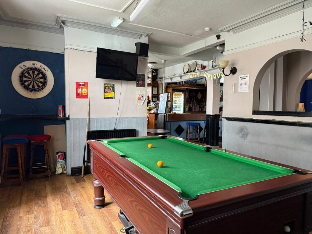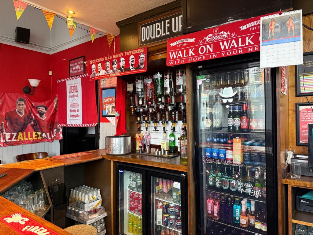 The Wellington features an open-plan layout with three distinct sections, each offering a unique atmosphere. At the front, an L-shaped central bar is surrounded by seating, catering specifically to Liverpool FC fans. To the left, towards the rear, is a dedicated seating area for Everton FC supporters, with a mix of fixed and loose furniture. On the right side, you’ll find a pool table and darts board, adding to the pub’s lively, interactive vibe. At the back, there’s a small yard that, with a bit of attention, has the potential to become a fantastic outdoor space to enjoy during the warmer months.